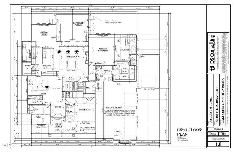 Listing details for 4341 Coldwater Springs Dr, Raleigh, NC 27616 : New Custom Plan That Truly Checks Every Box! Set on a generous 1.33-acre homesite with a private backyard, this beautifully designed custom home is built by award-winning ECI Custom Homes, Inc. and offers 10-foot ceilings on the main level, 4 bedrooms, and 5 bathrooms, including both a luxurious primary suite and a guest suite on the first floor. Thoughtful functionality continues upstairs with the convenience of laundry rooms on both levels. The heart of the home features a spacious, open-concept island kitchen, with the option to add a scullery or oversized pantry, ideal for both entertaining and everyday living. Additional highlights include a screened porch and an impressive 4-car garage providing ample storage and flexibility. Best of all, the plan is fully customizable to suit your lifestyle, with modifications expertly executed by award-winning ECI Custom Homes, Inc. This is a rare opportunity where modern elegance meets timeless craftsmanship—designed to reflect the way you live.