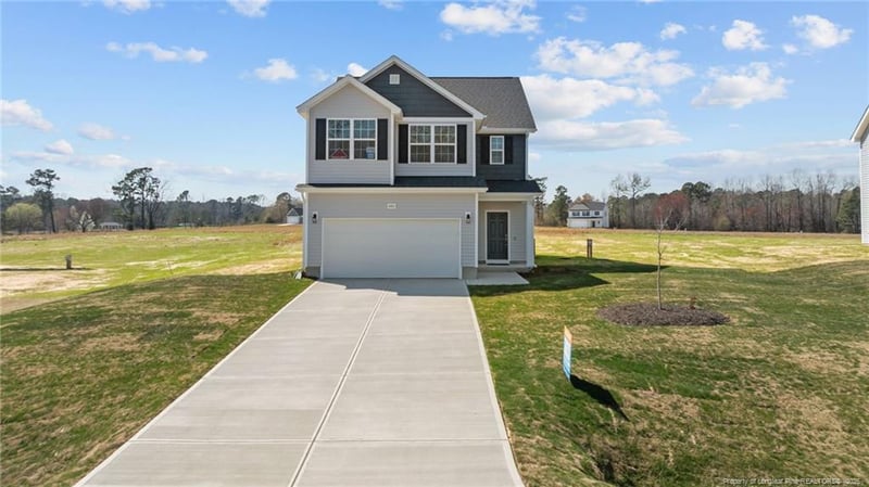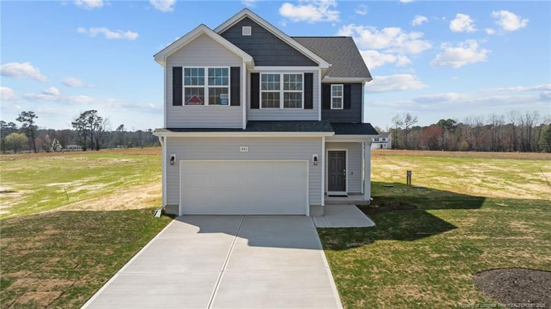Listing details for 441 Black Duck Ln, Lillington, NC 27546 : Move-In Ready! $10,000 Use-As-You-Choose using the preferred lender, must close by May 31, 2026! The Onslow is situated on a .61-acre lot, this home welcomes you with a foyer that includes access to a convenient half-bath, and flows seamlessly into a spacious great room that opens to the kitchen and dining area. The kitchen is equipped with countertop bar seating, granite countertops, shaker cabinets, a pantry, and stainless-steel appliances. The dining area opens up to a rear grill patio through sliding doors, creating an ideal space for indoor-outdoor living. The second floor boasts a primary suite with two separate walk-in closets and an ensuite bathroom with dual sink vanity, and a private shower and toilet area. There are two additional bedrooms with walk-in closets, a hall bathroom with a vanity and tub/shower combination, a linen closet, and a laundry room. The home has low-maintenance vinyl siding, dimensional roof shingles, and a 2-car garage. Fiber optic internet service is available, and the home is Energy Plus certified with a 1-2-10-year builder in-house warranty. Duck's Landing is a charming community in the peaceful countryside of Lillington, NC, featuring planned amenities like a tot lot, dog park, and picnic area, all with convenient access to Lillington, Fort Bragg(20 min), Raleigh, and Fayetteville.