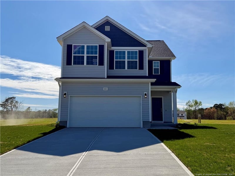 Listing details for 441 Black Duck Ln, Lillington, NC 27546 : Move-In Ready! $10,000 Use-As-You-Choose using the preferred lender, must close by May 31, 2026! The Onslow is situated on a .61-acre lot, this home welcomes you with a foyer that includes access to a convenient half-bath, and flows seamlessly into a spacious great room that opens to the kitchen and dining area. The kitchen is equipped with countertop bar seating, granite countertops, shaker cabinets, a pantry, and stainless-steel appliances. The dining area opens up to a rear grill patio through sliding doors, creating an ideal space for indoor-outdoor living. The second floor boasts a primary suite with two separate walk-in closets and an ensuite bathroom with dual sink vanity, and a private shower and toilet area. There are two additional bedrooms with walk-in closets, a hall bathroom with a vanity and tub/shower combination, a linen closet, and a laundry room. The home has low-maintenance vinyl siding, dimensional roof shingles, and a 2-car garage. Fiber optic internet service is available, and the home is Energy Plus certified with a 1-2-10-year builder in-house warranty. Duck's Landing is a charming community in the peaceful countryside of Lillington, NC, featuring planned amenities like a tot lot, dog park, and picnic area, all with convenient access to Lillington, Fort Bragg(20 min), Raleigh, and Fayetteville.