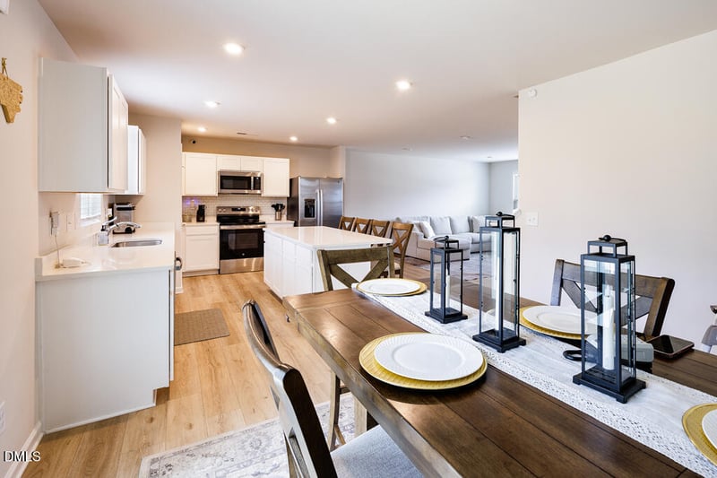 Step inside to an inviting open-concept layout filled with abundant natural light and a seamless flow that's ideal for both everyday living and entertaining. The main level features durable and stylish luxury vinyl plank (LVP) flooring throughout, creating a cohesive and low-maintenance living space. A versatile flex room on the first floor provides the perfect setting for a home office, study, or formal sitting area. At the heart of the home, the beautifully appointed kitchen shines with sleek quartz countertops, stainless steel appliances, and generous cabinet space--perfectly designed for everything from casual meals to hosting gatherings. The adjoining living and dining areas offer an effortless connection, making entertaining both easy and enjoyable. Upstairs, you'll find generously sized bedrooms along with the flexible fifth bedroom/bonus room, giving you endless possibilities for customization. Whether you need extra sleeping space, a home gym, or a media retreat, this home adapts to your lifestyle. A spacious two-car garage adds convenience and additional storage, while the home's prime location places you just minutes from Downtown Raleigh, RDU Airport, and an abundance of shopping, dining, and medical facilities--bringing everyday convenience right to your doorstep. Stylish, spacious, and exceptionally located, this home truly stands out as a must-see opportunity you don't want to miss!
