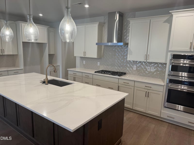 Enjoy effortless ranch-style living with an open concept layout that brings modern elegance and everyday functionality together. The gourmet kitchen is a chef's dream featuring GE Café appliances, a microwave wall oven, sleek stainless steel hood, champagne bronze fixtures, and high-end finishes throughout. The expansive island and adjacent dining area seamlessly connect to the living room with 12x8 sliding glass doors leading to your private covered patio, ideal for morning coffee or relaxing evenings under the stars.