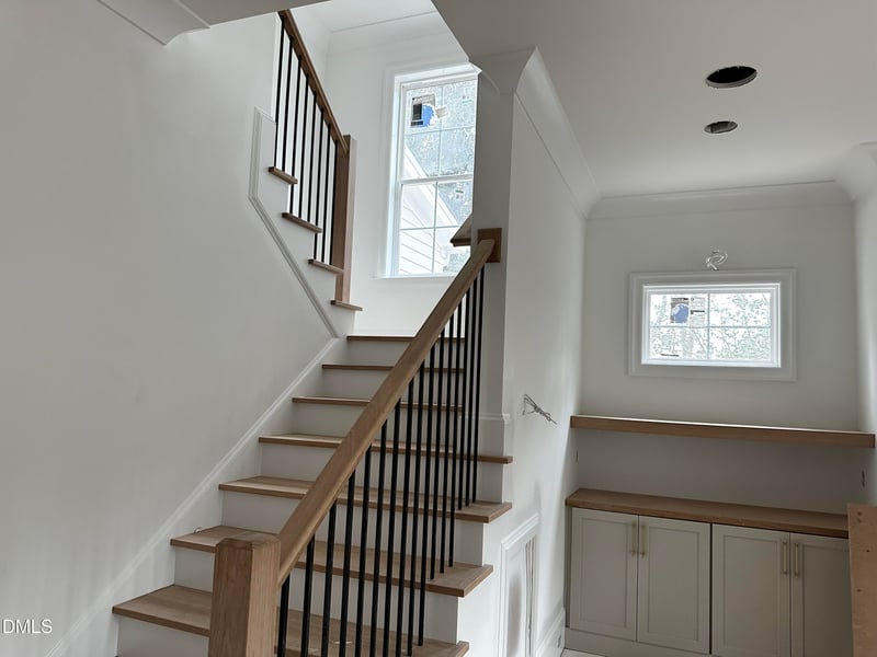 Listing details for 4523 Revere Dr, Raleigh, NC 27609 : (home listed at framing) One of my favorites, the Gabriel plan! 4520' ft of thoughtfully designed living space with 1100sqft of unfinished storage/potential. Owners suite and guest bedroom with full bath on FIRST floor. 5 bedrooms, 5 1/2 baths, dining, pocket office, loft, game room and exercise/flex room. Over 2,000 sqft of wide plank flooring. Pocket office and 1/2 bath off the kitchen! Elegant kitchen includes cabinets to ceiling, Wolf and Bosch appliances, hidden pantry with wine fridge and large island with apron farm sink. Dining room with pocket door provides flexibility of use. Bright living room area with multi-slide door on living room and breakfast walls lead to screen porch. How lovely it will be on a fall night to have the fire on in the screen porch with both sliders open! Stair lighting and window lead you to the second floor where more features will captivate. The window design and sconces make the open loft a cozy spot! Wall shelving with accent lighting adorn the hallway and lead to 3 large bedrooms, exercise/ flex room and game room. Game room with wet bar, closet, pre-wire for surround, ample wall space and a balcony overlooking the backyard with trees! You'll appreciate the potential and storage with the huge walk-in unfinished storage and 3rd unfinished walk up plumbed for future HVAC.