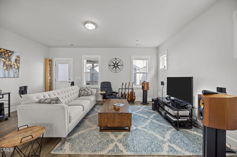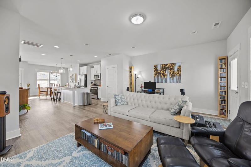 Listing details for 460 Douglas Falls Dr, Wendell, NC 27591 : Unmatched Value in the Heart of Treelight Square. Built in 2022 and barely lived inl, this exceptional Garman Homes residence stands apart as the only home in the community with a screened porch-designed for North Carolina's coveted four-season outdoor lifestyle. Enjoy morning coffee, evening dinners, and bug-free breezes year-round, all within walking distance to Treelight Square's cafes', shops, and Publix. Offered at $385,000, it represents outstanding value among significantly higher-priced neighbors. The home features three bedrooms and 2.5 baths, with a beautiful kitchen showcasing a massive quartz island, stainless steel appliances, and upgraded cabinetry with soft-close drawers and crown molding. Luxury vinyl plank flooring spans the first floor, anchored by a solid wood staircase leading upstairs. A private rear courtyard and detached garage enhance outdoor living, while a tankless water heater and ethernet wiring in every room support modern, work-from-home ease. Location, livability, and rare features-this one truly delivers.