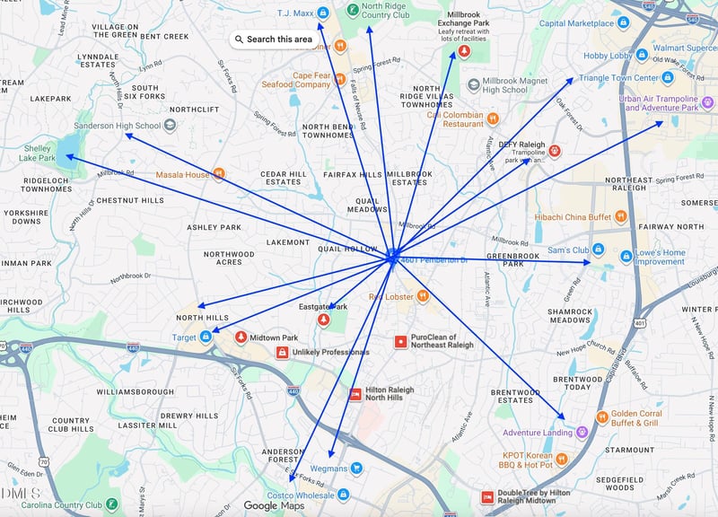 Location of 4601 Pemberton Dr, Raleigh, NC 27609