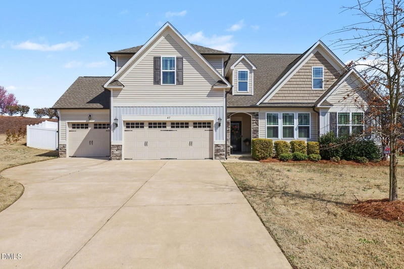 Listing details for 47 Morning Star Ln, Garner, NC 27529 : Tucked away on a quiet cul-de-sac lot, this beautifully designed, LIKE NEW, split-ranch home offers space, flexibility, and everyday comfort in the highly sought-after Cleveland area. The main floor features three bedrooms and two full baths, including a spacious owner's suite with ensuite for easy ONE LEVEL living. Upstairs, you'll find an additional bedroom, full bath, and bonus room--perfect for guests, a home office, or a private retreat. The large family room is the heart of the home, highlighted by a stunning dual-sided fireplace shared with the sunroom/ formal dining, creating a cozy yet open atmosphere. The oversized kitchen with buffet boasts abundant cabinetry and a massive island ideal for cookie baking, casual meals, or prepping alongside a second chef. The large walk-in pantry provides additional storage. PLANTATION SHUTTERS are a stunning upgrade you'll find throughout! Enjoy outdoor living year-round on the SCREENED PORCH. Let the fur babies enjoy the freedom to run in the VINYL, PRIVACY FENCED backyard. The 3-CAR ATTACHED GARAGE has unique, dual entry garage doors on the third bay for the convenience of driving a lawn mower directly from the front yard through the garage to the back yard! Conveniently located just 20 minutes from Raleigh with quick access to I-40 and the Triangle Expressway, this home is within walking distance to shopping and restaurants--offering the perfect blend of privacy, accessibility, and lifestyle.