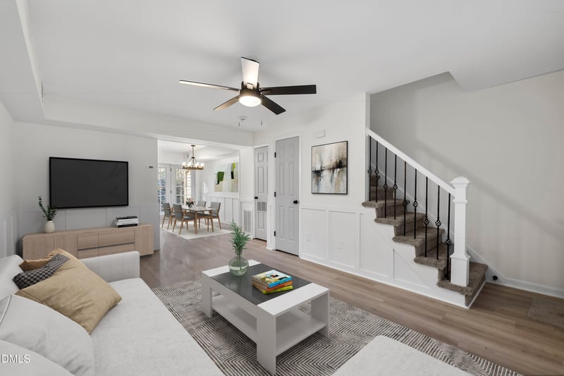 Listing details for 4705 Blue Bird Ct #E, Raleigh, NC 27606 : Charming Condo in fantastic Raleigh location with bright open floor plan and upgrades galore! Stunning custom kitchen with new shaker cabinets, quartz countertops, tile backsplash and stainless steel appliances. Wide plank LVP flooring throughout 1st floor, plush bedroom carpet and new interior paint. Beautiful tiled bathroom! Convenient to NC State, highways, shopping and restaurants! Move in and Enjoy. Staged photos for illustration only, to show homes potential.