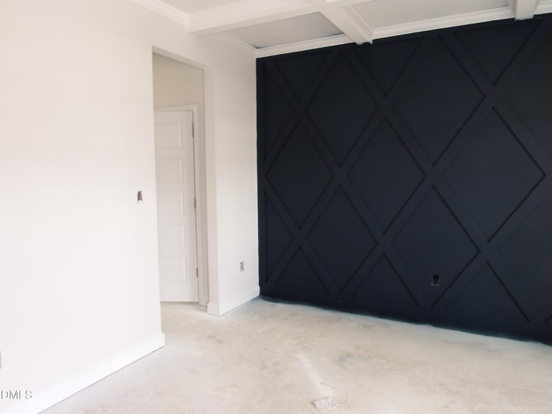 with a coffered ceiling and eye-catching diamond-pattern accent