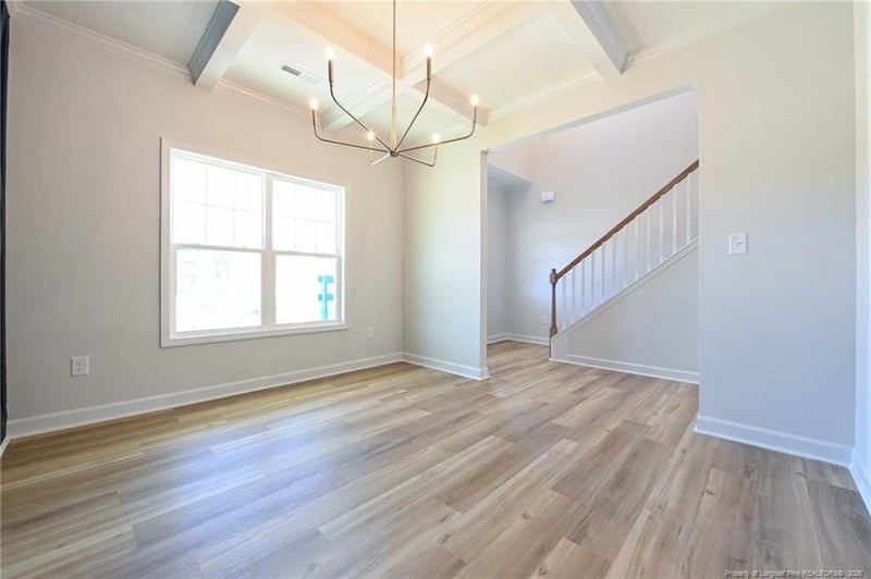Listing details for 4733 Scenic Pines Dr Lot 242, Hope Mills, NC 28348 : You owe it to yourself to take a closer look at our Cumberland Model—abeautifully crafted home that blends comfort, style, and smart design inone exceptional package. This stunning 2,252 sq ft floor plan offers aspacious open-concept layout with the primary suite convenientlylocated on the main level, ideal for everyday ease. Luxury vinyl plankflooring throughout all common and wet areas adds durability andmodern appeal.Just off the entry, the dining room or flex space makes a bold statementwith a coffered ceiling and eye-catching diamond-pattern accentwall, perfect for entertaining, working from home, or creating a formalgathering space.The family room flows seamlessly into a stylish kitchen featuring quartzcountertops, a center island, subway tile backsplash, pantry, and agenerous 124+ sq ft eat-in dining area—perfect for both casual mealsand hosting guests.The main-level primary suite is a true retreat, offering 155+ sq ft ofprivate space, a tasteful board-and-batten accent wall, and an ensuitebath with dual quartz-top vanities and a spacious walk-in closet.Upstairs, you’ll find two additional bedrooms, a full bath, and a generous255 sq ft bonus room or fourth bedroom, providing flexible space for ahome office, media room, or guest room.Enjoy peaceful mornings on the covered rocking-chair ready frontporch or unwind in the evenings on the covered rear patio. To top it alloff, this home is located in the highly sought-after Grays Creek SchoolDistrict—making the Cumberland Model an outstanding choice fortoday’s homebuyer.