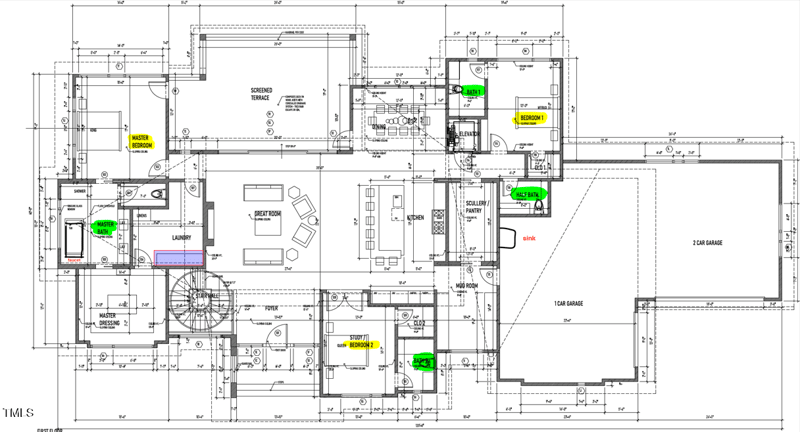 designer walk-in closet with built-in cabinetry and library ladder. Additional main-level bedrooms and or office each