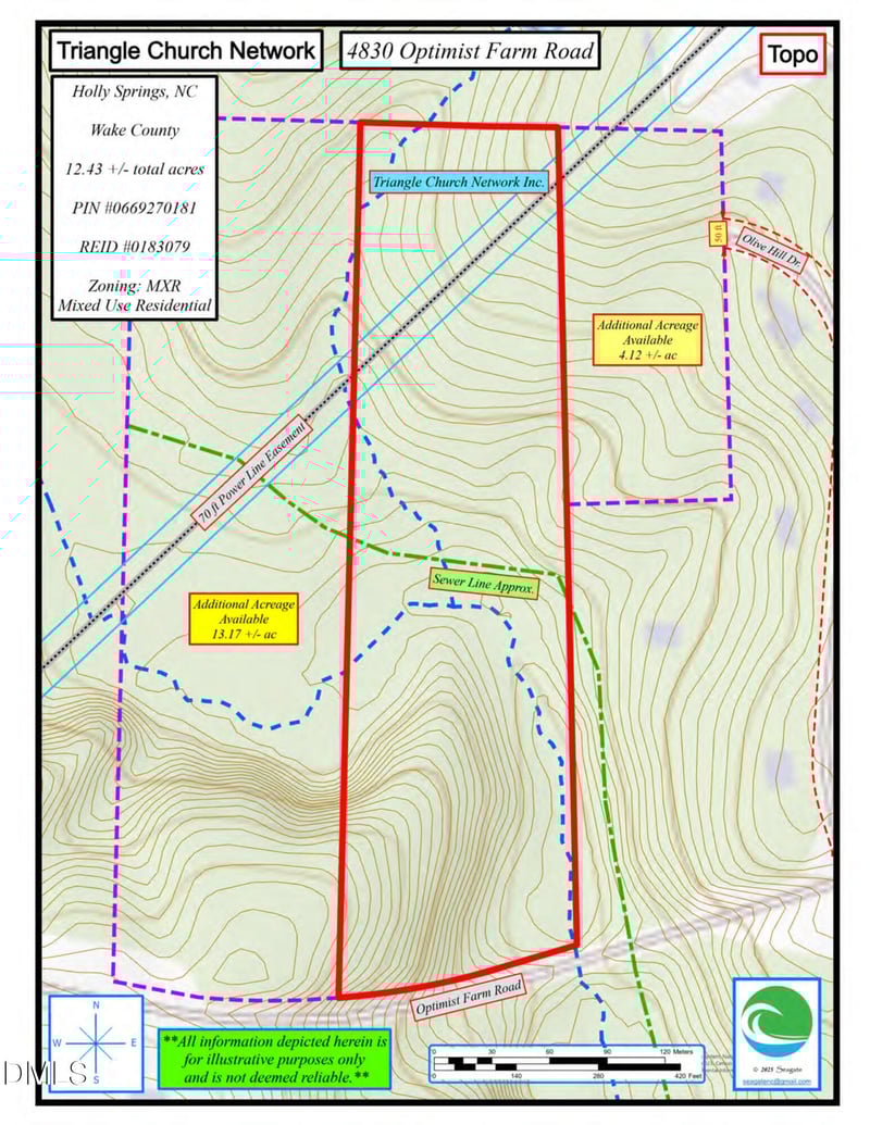Listing details for 4830 Optimist Farm Rd, Holly Springs, NC 27540 : Holly Springs 12.43-Acre Home / Business Site For Sale Prime Location | Development Flexibility | Natural Beauty Discover 12.43± rolling acres ideally situated near the intersection of Sunset Lake Road and Optimist Farm Road, with additional acreage available. This property offers the perfect balance of privacy, accessibility, and development potential. Property Highlights 12.43± Acres of Prime Land featuring scenic topography, mature trees, and a peaceful flowing creek Perfect for an Executive Estate, Family Compound, or Home-Based Business Ample room for animals, workshops, barns, gardens, and recreation Minutes from I-540, RTP, Holly Springs, Cary, and Fuquay-Varina Public Water & Sewer available* Zoning: MXR (Neighborhood Mixed-Use Residential) — allows: Detached & Attached Dwellings Small- & Large-Scale Apartment Dwellings Limited Public/Institutional Uses Limited Commercial Uses This site provides a rare opportunity to create your dream home or pursue a strategic investment in one of the Triangle's most desirable and fast-growing corridors — close to everything, yet surrounded by nature. * Water and sewer availability subject to verification with the Town of Holly Springs.