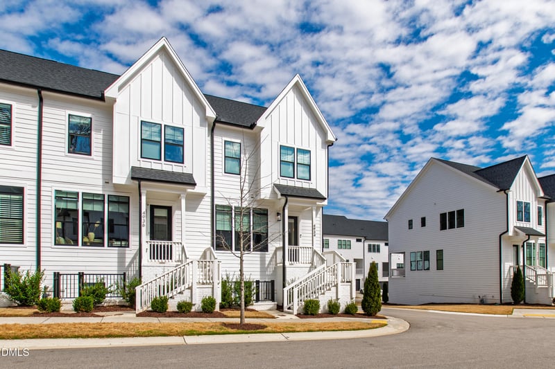 Listing details for 4934 Trek Ln, Raleigh, NC 27606 : Welcome home to effortless living in the heart of the Triangle. Built in 2023, this stylish end-unit luxury townhome by A Squared offers the perfect blend of modern design, smart price point, and unbeatable convenience. Step inside to a bright, open-concept main level designed for both relaxing and entertaining. Tall windows flood the space with natural light, highlighting the hardwood floors, crown molding, and modern, upgraded finishes throughout. The kitchen is the true standout, featuring quartz countertops, a large island with bar seating, shaker-style soft-close cabinetry, tile backsplash, stainless steel appliances, and a gas range. Just off the kitchen, enjoy morning coffee or evening unwinding on the covered balcony. The spacious family room centers around a gas log fireplace, creating a cozy space to gather. Upstairs, the primary suite offers a private retreat with an oversized walk-in closet and a spa-inspired bath featuring a dual quartz vanity, tiled walk-in shower, and separate water closet. Two additional bedrooms provide flexible space for guests, a home office, or future needs. Downstairs, the versatile basement recreation room can easily become your workout area, media room, or remote-work headquarters. Practical features add everyday value: two-car rear garage plus driveway parking, energy-efficient ducted mini-split HVAC systems, insulated garage door, and a durable fiber cement and painted white brick exterior. With the roof, HVAC, windows, and water heater all only three years old, you can enjoy peace of mind for years to come. Located in highly desirable West Raleigh, you'll love being minutes from NCSU, Lake Johnson Park, the NC Museum of Art, and the Lenovo Center, with Crossroads and Fenton shopping and dining just 10 minutes away. Quick access to I-40 and I-440 makes commuting anywhere in the Triangle simple. Best of all, the HOA handles exterior maintenance and landscaping, giving you the low-maintenance lifestyle you want so you can spend more time enjoying Raleigh and less time on upkeep. Modern, convenient, and move-in ready - this is Triangle living done right.