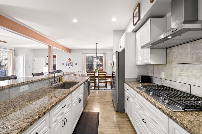 Listing details for 4975 Oak Grove Church Rd, Mebane, NC 27302 : 8.29 private acres. Custom 3-bedroom, 2.5-bath home in a prime location, just minutes to Tanger Outlets and downtown. This thoughtfully designed home blends comfort, quality, and functionality. The main level features engineered wood floors, exposed beams for a warm, inviting feel, and a spacious primary suite with a zero-entry shower. The kitchen offers granite countertops, tile backsplash, farmhouse sink, LP gas cooktop, and electric oven—perfect for everyday living and entertaining.