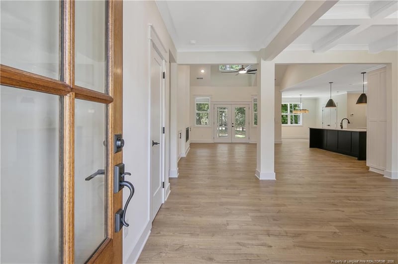 Listing details for 50 Sandpiper Dr, Sanford, NC 27332 : Welcome to this beautifully crafted 4 bedroom, 3 bath home located in the highly desirable Carolina Lakes gated golf and lake community. Offering high end finishes throughout, this custom built home blends elegance with everyday comfort.The thoughtfully designed open split floor plan is perfect for both daily living and entertaining. The gourmet kitchen features soft close custom cabinetry, quartz countertops, a large island with breakfast bar, double trash pull-out, and deep drawers, providing both style and functionality. The spacious laundry room includes custom cabinets and shelving for added convenience. The primary suite offers dual walk-in closets, a double vanity, and a luxurious tiled walk-in shower, creating a relaxing private retreat. Upstairs features a private retreat, a fourth bedroom with walk-in closet, a full bath, and walk in storage area. Enjoy outdoor living on the upgraded screened porch with a stained bead board ceiling and ceiling fan, or welcome guests through double stained front doors onto the charming front porch with matching bead board ceiling. Located in the amenity rich Carolina Lakes community, residents enjoy golf, boating, fishing, swimming, parks, and more offering an exceptional lifestyle in a beautiful setting. Just in time for summer! Too many upgrades to list. Professional photography coming soon. Some pictures are likeness only, and will be marked as likeness only, and plan is flipped.