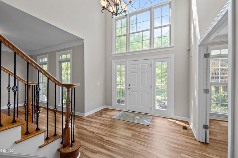 Listing details for 5005 Mill Hill Ln, Chapel Hill, NC 27517 : Spacious 5 bedroom home in Durham with multiple living areas. Tucked away in a quiet Durham neighborhood, this stunning transitional home blends elegance, space, and natural beauty. A grand two-story entry welcomes you with a vaulted ceiling and a dramatic wall of windows that fills the home with light from the moment you step inside. Offering five bedrooms--or four plus a private study--this home provides exceptional flexibility. With three full bathrooms upstairs and an additional full bath on the main level, there's room for everyone to live comfortably. The spacious primary suite is a true retreat, featuring a tray ceiling, three oversized windows, and a killer walk-in closet. The spa-like en-suite bath that was remodeled in 2025 includes a freestanding soaking tub, a separate glass-enclosed shower, and dual vanities. Upstairs bedrooms are generously sized, each with plush new carpeting and walk-in closets. At the heart of the home, the beautifully designed kitchen features ample counter seating, a bright breakfast nook, and seamless flow into the inviting family room with a gas fireplace and rear staircase--perfect for both everyday living and entertaining. Formal living and dining rooms add elegance and versatility, while large windows throughout the home create a bright, airy feel. Fresh, new interior paint makes this home shine. Step outside to a spectacular screened porch overlooking a meticulously landscaped, irrigated half-acre lot. The fenced backyard backs to protected Army Corps land and scenic New Hope Creek, offering rare privacy and a peaceful, natural backdrop. Additional highlights include a three-car garage with a spacious storage room and a convenient mudroom/laundry area just inside the garage entrance.