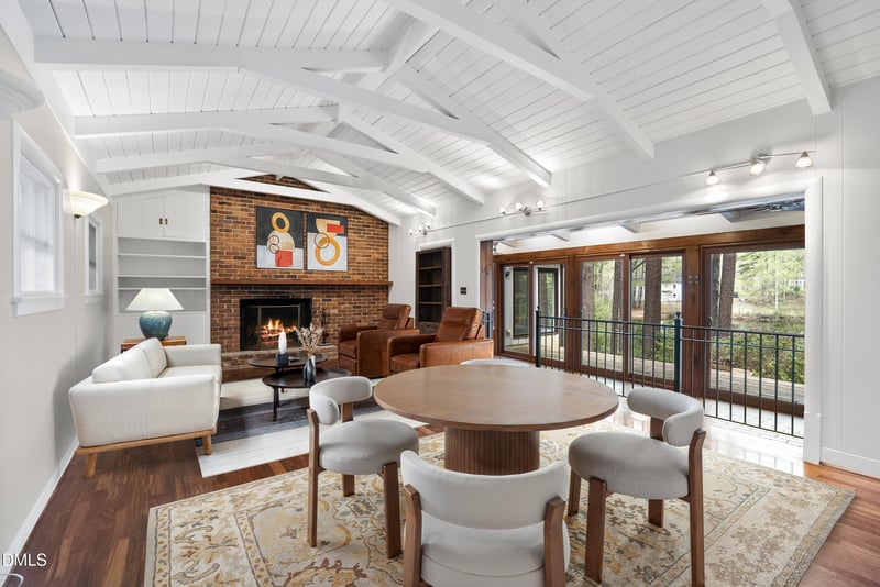 Listing details for 5020 Red Cedar Rd, Raleigh, NC 27613 : Tucked beneath a canopy of mature hardwoods on 1.69 acres, this mid-century inspired retreat with a private pond offers a rare combination of architectural character, modern updates, and a setting that simply can't be replicated. From the moment you arrive, a gated entrance welcomes you into a quiet, wooded escape where privacy, nature, and design come together effortlessly. Inside, the home lives like a classic ranch with warm wood accents, clean lines, and a layout designed to maximize both comfort and connection to the outdoors. Expansive water views stretch across the entire back of the home, with updated sliding doors and windows drawing your eye straight to the pond, while a sprawling deck creates a seamless extension of the living space--ideal for entertaining or simply taking in the stillness of the water and surrounding trees. The primary suite offers a peaceful retreat with rich pine floors and a custom walk-in closet, while additional bedrooms and flexible living areas provide space for guests, work, or multi-generational living. Outside, the lifestyle continues with a private dock, updated steps to the water, and thoughtfully designed outdoor spaces including a firepit area and ambient patio lighting. The home reflects true pride of ownership with meaningful improvements already in place, including a roof replacement with added insulation for enhanced efficiency, updated HVAC systems with air purification, replaced exterior and sliding doors, an upgraded irrigation system, exterior lighting enhancements, and major infrastructure updates such as a recently replaced sewer line and multiple water heaters serving different areas of the home . A detached barn/workshop adds versatility for storage, hobbies, or recreational equipment. All of this is set in a highly desirable Raleigh location where you feel completely removed from the pace of the city, yet remain just minutes to everything. This is more than a home-it's a private waterfront setting, a mid-century retreat, and a lifestyle opportunity all in one.