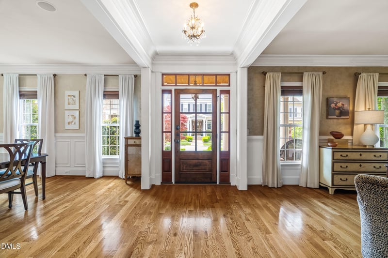 Listing details for 5030 Myrtle Oak Dr, Cary, NC 27519 : Some homes are built. This one was crafted. Built by Rice Building Company and finished to a standard rarely seen in Amberly, this Charleston-style residence delivers the scale and sophistication a discerning buyer demands -- wrapped in a lifestyle that's actually livable. At 4,064 square feet across three thoughtfully designed floors, the home opens with a columned front porch and a foyer that signals immediately: this is different. Hardwood floors, coffered ceilings, crown molding, and custom built-ins set the tone throughout. The kitchen is a true chef's environment -- Viking range, double oven, marble countertops, butler's pantry with wood shelving, and a beverage cooler -- designed for the executive who entertains. The family room anchors the main level with a custom fireplace and built-in bookcases, flowing into the dining room and builder-completed sunroom. The primary suite is private and generous, with a soaking tub, walk-in shower, double vanity, and walk-in closet. Secondary bedrooms are true bedrooms. The third-floor bonus room offers flexible space for media, a second office, or guests. Outside, a brick-fenced courtyard garden with mature Japanese maples and professional landscaping delivers a private sanctuary. Major systems handled: roof 2022, three HVAC units (2015/2020/2020), two tankless water heaters. Amberly's resort-style amenities -- indoor pool, fitness center, clubhouse, and walkable village square with restaurants and retail -- complete the picture. Minutes to RTP, RDU, and I-540. This home is ready -- fully, beautifully, and without compromise.