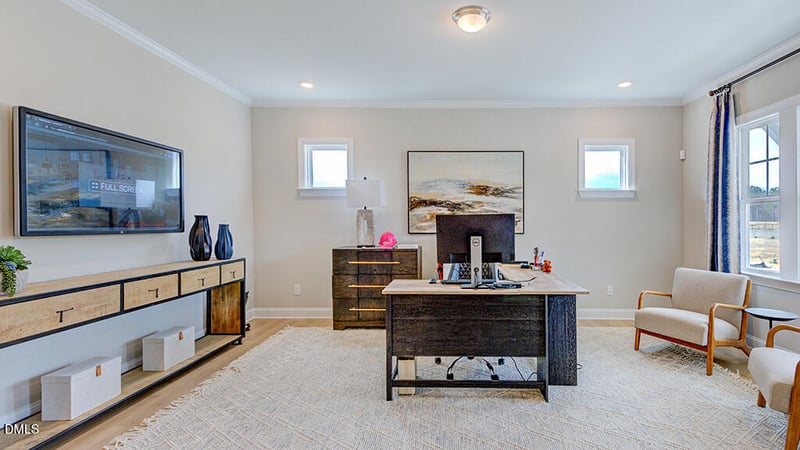Listing details for 505 Morning Glade St, Wake Forest, NC 27587 : What's Special: Model Home | Final Opportunity | Loft | Covered Patio | West Facing Lot | Flex Room. Model Home Available - May Closing! Built by America's Most Trusted Home Builder. Welcome to the Wayland at 505 Morning Glade Street in Radford Glen! This beautifully designed home blends function and luxury. Beginning with a spacious den with double doors and a formal dining room accented by elegant tray ceilings. The foyer opens into a bright, airy great room that flows seamlessly into the casual dining area and chef-inspired gourmet kitchen. A covered patio extends the living space outdoors for year-round enjoyment. Upstairs, a generous loft anchors three secondary bedrooms--two connected by a Jack-and-Jill bath, with another full bath nearby. The luxurious primary retreat features a tray ceiling, additional windows for natural light, two walk-in closets, and a spa-inspired bathroom complete with a dual sink vanity, a separate shower and soaking tub. Make lawn maintenance easier with a full yard irrigation system. Located in the heart of Wake Forest, this close-knit community offers calm living surrounded by lush forests. Enjoy the perfect blend of small-town charm and big-city convenience with plenty of local restaurants and boutiques nearby. And when you want more excitement, Highway 98 and 1 provide a quick 30-minute drive into Raleigh. Additional Highlights Include: tray ceiling in the primary bedroom, tray ceiling in the formal dining room, boxed oak stairs with hardwood treads, gourmet kitchen, covered screened back patio, jack-and-jill bathroom added upstairs, additional windows added to the great room, additional windows added to the flex room, dual sink vanity added to bathroom 2, fireplace in the great room, laundry sink and cabinets added to the laundry room, and a full yard irrigation system. MLS#10149276