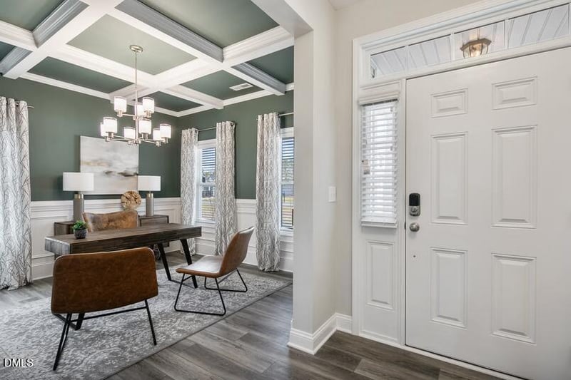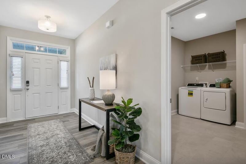 Listing details for 507 Clydes Point Way, Wendell, NC 27591 : Introducing The Granville Plan in the highly desirable Maggie Way community! This beautiful two-story home welcomes you with a spacious foyer that opens into a stunning great room, complete with a gas log fireplace and floating mantle. Just off the great room is the formal dining room, enhanced with elegant picture-frame wainscoting. The luxury first-floor primary suite features a tray ceiling with crown molding, while the spa-like primary bathroom offers dual sinks with quartz countertops, a large walk-in tiled shower, and direct access to an oversized walk-in closet. Upstairs, you'll find three generously sized bedrooms, each with its own walk-in closet, along with a full hallway bathroom and an open loft area—perfect for a second living space or office. Enjoy your private, wooded 0.56-acre backyard and No City Taxes! This home is under construction, so there's still time to customize your design selections. Don't miss your opportunity—make it yours before it's too late!