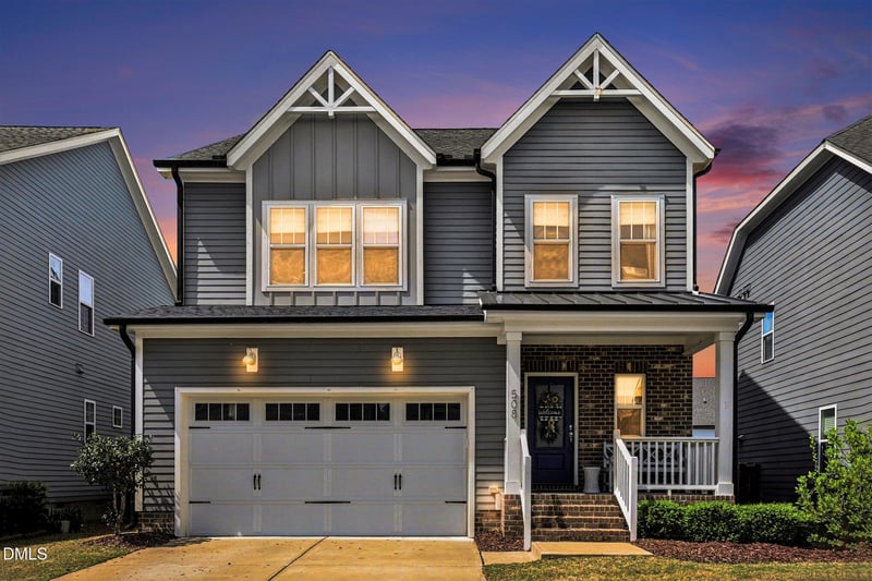 Listing details for 508 Midnight Moon Dr, Wendell, NC 27591 : Welcome home to 508 Midnight Moon Dr, where thoughtful design, elevated finishes, and everyday comfort come together seamlessly. This meticulously maintained Garman Homes ''Lucky'' model (no longer being built in Wendell Falls!) was thoughtfully designed to blend style and function and truly feels like home the moment you walk through the door. This home is where mornings start easy, evenings unwind naturally, and weekends feel like a staycation. Ideally located on the original (and highly desirable) side of Wendell Falls, this home is surrounded by charming tree-lined streets and sidewalks that lead to Lake Myra Elementary, the Farmhouse Cafe, and the resort-style amenities at the community clubhouse with the pool and fitness center. You'll love the easy access to the lake, trails, playgrounds, parks, and green spaces. Every detail of this home has been curated to create a space that lives beautifully, offering both comfort and ease: the main level offers an open and bright design, anchored by a stunning kitchen featuring granite countertops, soft-close cabinetry and drawers, a walk-in pantry, a gas range, upgraded SS appliances including a wall oven & microwave, and a spacious island that naturally becomes the heart of the home. The kitchen flows effortlessly into the living area with custom built-in bookcases and a cozy gas fireplace, while a tucked-away flex space/home office gives you the perfect balance of productivity and privacy. Relax and unwind on the screened porch overlooking a fenced backyard. Upstairs, the spacious owner's suite offers a true retreat with a gorgeous bath with dual vanities and dual walk-in closets. Two additional bedrooms, a versatile loft with a stylish, custom barn door, and a custom-designed laundry room provide space and comfort for everyone. Just minutes from Treelight Square, enjoy local dining, shopping, and community events close to home. This home offers a rare combination of comfort, functionality, and lifestyle in one of the area's most sought-after neighborhoods. Live, work, and play in Wendell Falls!