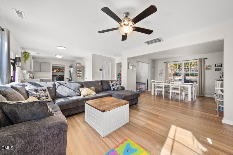 Listing details for 508 Weeping Willow Dr, Durham, NC 27704 : Looking for a spacious home with an open floorplan, fresh luxury vinyl flooring, and a fantastic fenced-in backyard? This is the one! Step into the welcoming foyer with space for shoes and coats, then flow into the bright, open living room that seamlessly connects to the kitchen. The kitchen features stylish gray-accented cabinets, plenty of counter space, and a refrigerator that conveys (washer and dryer convey too). A window over the sink provides a great view of the fenced backyard—perfect for entertaining, pets, or play. Enjoy the flexibility of two dining areas: a formal dining room AND a breakfast area, giving you options for everyday meals or gatherings. Upstairs, a large loft offers endless possibilities—office, hobby room, meditation space, or a play area. The HUGE primary bedroom includes double windows for natural light and a generous walk-in closet. Secondary bedrooms are roomy and comfortable as well. HVAC 2025. Solar Panels to keep that electric bill low. Located just minutes from Durham fun—catch a Durham Bulls game, enjoy a night at DPAC, or get to RDU Airport in just 25 minutes. With convenience, space, and comfort, this home is the perfect fit for easy Durham living!