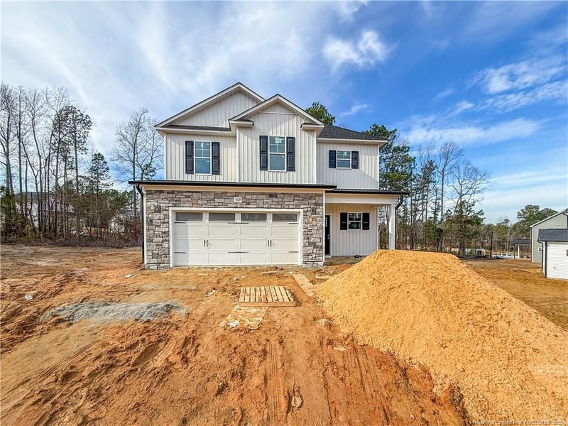 Listing details for 509 Edwalton Way LOT 81, Fayetteville, NC 28311 : Introducing the Benson floor plan by Furr Construction, offering 4 bedrooms, 2.5 bathrooms, and a 2-car garage. Step inside to a welcoming foyer leading to a formal dining room and a spacious kitchen featuring a center island and granite countertops. The large living room includes an electric fireplace, perfect for relaxing or entertaining. A half bath is conveniently located on the main level. Upstairs, the primary suite features dual vanities, a soaking tub, a stand-alone shower, and a walk-in closet. Three additional bedrooms share a full bathroom with a tub/shower combo, and the laundry room is conveniently located on the second floor. Located in The Hills at Stone Gate community, close to I-295, shops, and restaurants. Preferred lending by Alpha Mortgage Advantage.