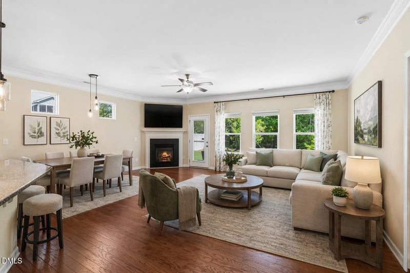 Listing details for 51 Forest Glade Ct, Clayton, NC 27527 : Welcome to this impeccably maintained ranch home in Clayton, NC, offering true one-level living with thoughtful upgrades and exceptional care throughout. Buyers searching for ranch homes in Clayton, NC or move-in ready homes with privacy and outdoor space will immediately appreciate what this property has to offer. From the moment you arrive, the curb appeal stands out with carefully curated landscaping in both the front and backyard. The private backyard backs to mature trees, creating a serene setting, and features an oversized upgraded patio, along with a persimmon tree and dogwood tree for added charm. Inside, the home shows like a model with gleaming engineered wood flooring, heavy trim details, wall accents in the foyer, triple crown molding, and soaring 9-foot ceilings. The open layout is anchored by a massive granite island overlooking a light-filled living room centered around a gas fireplace, creating an ideal space for both everyday living and entertaining. The kitchen offers clean, well-maintained cabinetry, stainless steel appliances, and ample workspace. The popular split-bedroom floor plan provides privacy, with the primary suite tucked away from the secondary bedrooms. The primary bedroom features a 10-foot tray ceiling, abundant natural light, and a spacious ensuite with a walk-in shower, double vanity, and large closets. Two additional bedrooms share a well-sized full bathroom with a soaking tub. Additional highlights include upgraded ceiling fans throughout, added storage shelving in the spacious two-car garage, and minimal wear and tear thanks to meticulous maintenance by the original owners since the home was built in 2018. This is a rare opportunity to own a truly move-in ready ranch home in Clayton where quality, comfort, and setting come together seamlessly.