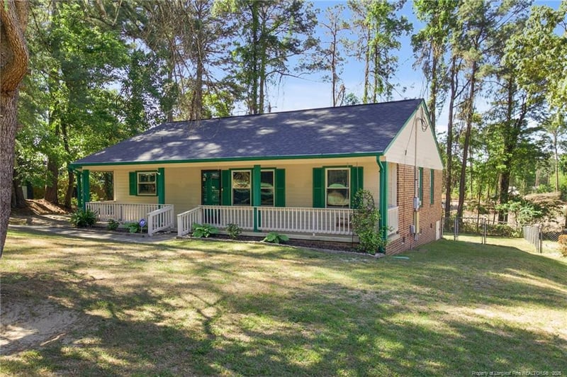 Listing details for 5107 Hayden Ln, Fayetteville, NC 28304 : Super Charming 4-bedroom, 2-bath home boast tons of newer items such as countertops, appliances, flooring, and more with excellent inviting curb appeal! This well-maintained and improved upon property features a welcoming covered front porch—perfect for relaxing mornings or unwinding in the evenings—set against a peaceful, tree-lined backdrop. The exterior offers classic siding with contrasting shutters for a timeless look. Inside, you’ll find a comfortable layout ideal for everyday living, while the spacious yard provides plenty of room for outdoor activities, gardening, or entertaining. Enjoy the privacy and shade of mature trees in this serene setting—perfect for those seeking comfort and charm. Close to shopping and easy access to Fayetteville airport and getting to local military bases