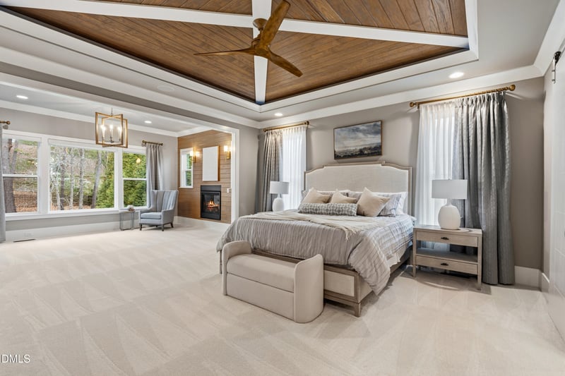 Listing details for 5112 Bella Ridge Dr, Raleigh, NC 27615 : Located in the Bella Vista neighborhood of North Raleigh, this exceptional residence offers refined craftsmanship, premium finishes, and a layout designed for effortless living. This home offers 5,752 square feet with 4 bedrooms, 4.5 bathrooms, a 3-car garage, and a fully fenced backyard complete with a stone patio and built-in grill— ideal for entertaining. The main level welcomes you with a grand foyer and dedicated study, leading into a spacious family room with custom built-ins and a gas fireplace. A light-filled dining area flows seamlessly into a large sunroom with sliding glass doors, creating an inviting indoor-outdoor connection. Tucked away for convenience is a concealed mudroom with a built-in desk and a thoughtfully designed laundry room, maximizing both function and organization. At the heart of the home, the gourmet kitchen impresses with a large center island featuring a prep sink, secondary sink, purified water, and a walk-in pantry. Top-tier appliances include a Wolf six-burner gas range with dual ovens, a Sub-Zero refrigerator, and a wine cooler—perfectly suited for both daily living and elevated entertaining. The main-level primary suite is thoughtfully positioned as a private retreat, complete with a sitting area and gas fireplace, a generous walk-in closet, dual vanities, and a spacious walk-in shower with dual shower heads. Upstairs, a bonus room with wet bar and additional storage sets the stage for entertaining, while 3 additional bedrooms—each with a private en-suite bath and walk-in closet—offer comfort and privacy for family or guests. An additional rec room provides flexible space for a guest suite, home office, or fitness room. A linen closet and a large walk-in storage room at the end of the hall complete the upper level with ample room for organization.