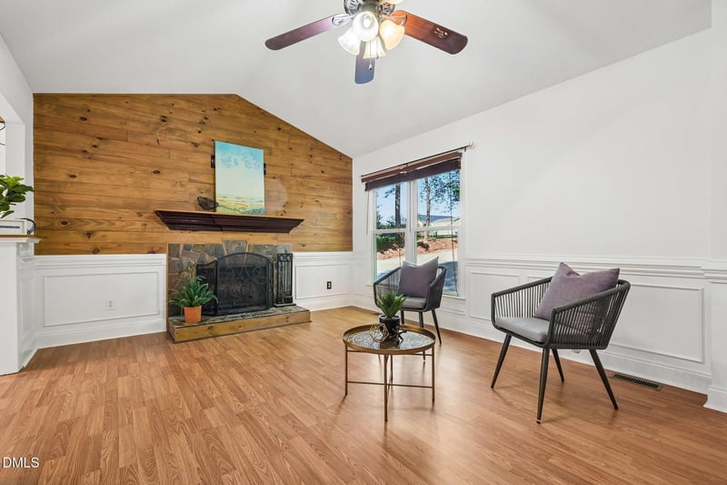 Listing details for 512 Rockvale Ct, Benson, NC 27504 : Charming ranch-style retreat on nearly an acre! This 3-bedroom, 2-bath home offers the perfect blend of comfort and privacy with a fenced backyard and a wired workshop--ideal for hobbies or storage. Inside, enjoy fresh updates including new paint and new flooring throughout the main living areas. The spacious family room features soaring cathedral ceilings and a slate-hearth, wood-burning fireplace, creating a warm and inviting focal point. The open kitchen and dining area provide an easy flow for everyday living and entertaining. The primary bedroom has cathedral ceilings, a en-suite with dual vanity, shower, & walk-in closet. Tucked in a desirable no-HOA neighborhood, yet conveniently located just minutes from shopping, dining, entertainment, and I-40--this property delivers both freedom and accessibility.