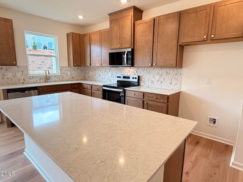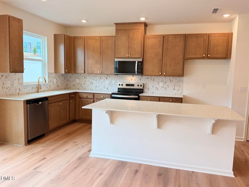 Listing details for 518 Sunset Lake St, Durham, NC 27704 : Spacious and light-filled 3-bedroom, 2.5-bath two-story townhome with a 2-car garage and open floor plan, located in a desirable community with a pool. The stunning kitchen features 9-foot ceilings, a large island with Quartz countertops, luxury vinyl plank flooring, Whirlpool® stainless steel appliances, Aristokraft cabinets, and Moen faucets. The generous owner's suite offers a dual sink vanity, walk-in shower, elongated toilet, and Moen fixtures. Designed for energy efficiency, this ENERGY STAR certified home is equipped with Ecobee smart thermostats for optimal comfort. Enjoy the privacy of a beautiful wood-view homesite.
