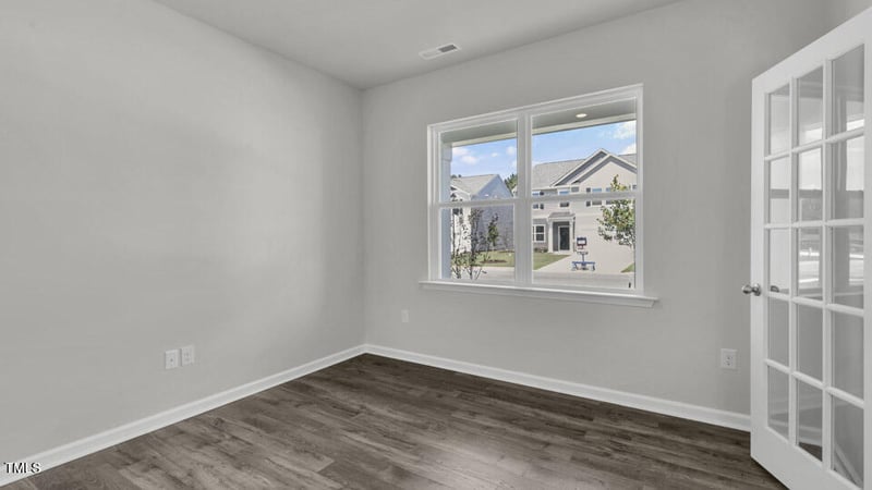 From the moment you enter, you're welcomed by a bright foyer that leads past a flex room, accented with charming French doors, perfect for a home office or formal space. Then continuing past the powder room and storage closet and into a spacious, open-concept main living area that is finished with elegant revwood flooring. The great room, dining area, and kitchen are seamlessly connected, creating an ideal layout for both everyday living and entertaining.