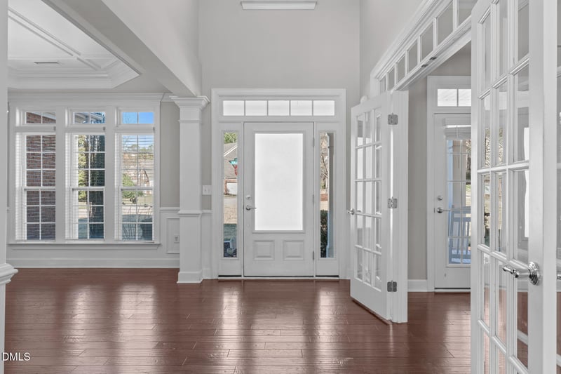 Listing details for 520 Alliance Cir, Cary, NC 27519 : Brick estate with a 3-car garage nestled on a half-acre corner lot ideally situated in the Cary community of Harmony. This stunning two-story entry welcomes you into a light-filled open floor plan accented by rich engineered hardwood floors throughout the main living areas. Just off the foyer, the elegant formal dining room features detailed trim and a tray ceiling, creating a refined setting for entertaining. An executive home office offers French door entry from the foyer along with two additional exterior doors opening directly to the front porch, ideal for non-interruptive meetings. Beyond the offset staircase, the great room showcases a cozy gas-log fireplace with built-in cabinetry, surround sound and a large wall of windows. The chef's kitchen boasts gorgeous cabinetry and timeless tile backsplash, breakfast bar with storage and seating, gas cooktop, granite countertops, wall oven/microwave combo, walk-in pantry, and a bright breakfast area for casual dining. The first floor is complete with a guest suite and adjacent full bath, plus a convenient laundry room with work sink. Upstairs, you'll find four additional bedrooms and three full baths, including the spacious owner's suite with a tray ceiling, abundant natural light, dual walk-in closets, tiled shower with bench seat, garden tub, and dual-sink vanity. Two guest bedrooms share a Jack-and-Jill bath, and an oversized bonus room offers flexible space for a game room, craft room, or home gym. Outdoor living is exceptional, from the covered front porch to the open back patio and screened-in porch featuring a wood-burning fireplace, skylights, and ceiling fan, perfect for year-round enjoyment. Additional highlights include a tilled garden plot, rain barrel, and play equipment. Located in a country club style community with a two-story clubhouse, pool with slide, lighted sports courts for tennis, pickleball, and basketball, and a fenced playground. Harmony is conveniently situated less than 2 miles from NC-540 and under 0.1 mile to NC-55 and Turner Creek Elementary, with easy access to all the incredible shopping, dining, and recreation options throughout Cary and Wake County.