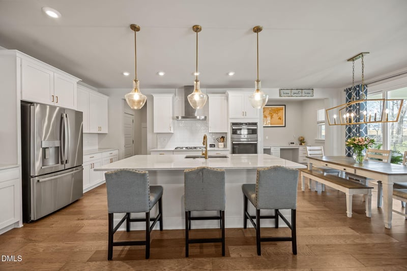 Listing details for 521 Roycroft Dr, Wake Forest, NC 27587 : If you've been waiting for the right home in Holding Village--this is your opportunity. Built in 2023, this 5-bedroom, 4-bath home stands out with its flexible layout and modern finishes. 521 Roycroft is where move-in ready meets today's most desired features--paired with everyday ease. Plus, seller offering $5,000 toward closing costs with an acceptable offer--adding immediate value and making your move even more attainable. Designed for both real life and effortless entertaining, the main level features an open-concept layout anchored by a spacious family room with gas fireplace, seamlessly flowing into a light-filled kitchen with quartz countertops, abundant cabinetry, a large center island, stainless steel appliances, and a 5-burner gas cooktop. A dedicated dining area, tucked-away study nook, oversized walk-in pantry, and drop zone off the garage add thoughtful function, while a main-floor guest suite with full bath provides ideal flexibility for visitors or multi-generational living. Upstairs, a versatile loft creates the perfect second living space--ideal for a playroom, media area, or casual lounge. The expansive primary suite offers a true retreat with a spa-inspired bath featuring a walk-in shower with rain head, dual vanities, water closet, and a large walk-in closet. Three additional bedrooms, two full baths, and a centrally located laundry room complete the second floor. Outdoor living is just as inviting, with a welcoming front porch, screened porch for year-round enjoyment, grilling patio, and a fenced backyard--perfect for both entertaining and everyday living. Located in Holding Village, residents enjoy access to a community pool, playground, and a connected, lifestyle-driven neighborhood--just minutes from Wake Forest's shopping and dining.
