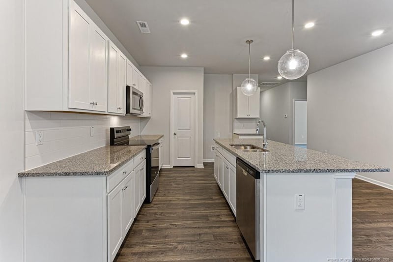 Listing details for 5212 Tyndall Dr, Sanford, NC 27330 : 4.99% Buy Down, $7500 Closing Cost, Stainless Steel Refrigerator, 2" White Faux Blinds, Washer & Dryer and 6' Wooden Privacy Fence. The Vantage is a thoughtfully designed single-story floor plan. The plan features a covered front porch and inviting foyer that lead into a bright, open layout that seamlessly connects the family room, dining area, and island kitchen with a spacious pantry. The owner’s suite offers a private retreat with dual vanities, a soaking tub, walk-in shower, linen closet, and walk-in closet. Two additional guest bedrooms share a full bath and convenient hallway linen closet. A laundry area, coat closet, and one-car garage add everyday functionality. Step outside to enjoy a peaceful patio—perfect for morning coffee or evening gatherings. With its smart layout and modern design, the Vantage plan brings comfort, convenience, and quality craftsmanship. 30 Minute commute to Fort Bragg and the Raleigh/Durham areas.