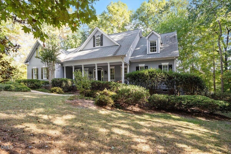 Listing details for 5228 Mill Dam Rd, Wake Forest, NC 27587 : Set along the shores of a picturesque lake and surrounded by tranquil woods and preserved common area, this exceptional home offers a rare blend of privacy, comfort, and natural beauty. From the moment you arrive, the setting feels like a retreat where peaceful water views and abundant wildlife, including ducks, geese, and turtles, become part of everyday life. Inside, the main level welcomes you with rich hardwood floors that flow seamlessly throughout. The central living room, framed by custom built-in bookcases and a cozy fireplace, captures stunning lake views, while the family room boasts a dramatic cathedral ceiling, gas fireplace, and a panoramic view of the lake. An updated kitchen serves as the heart of the home, showcasing quartzite counters, walk-in pantry, and easy access to the surrounding living areas. A 1st floor office with a closet adds flexibility for remote work or additional guest space. The primary bedroom and a secondary bedroom are located on the first floor. The primary suite is a true sanctuary, featuring serene lake views, two walk-in closets, and an updated bath complete with an remodeled walk-in shower, garden tub and dual vanities with granite counters. The secondary bedroom also offers a walk-in closet and its own remodeled bath with a walk-in shower. Upstairs, you'll find a private ensuite retreat with a large walk-in closet, along with a charming flex room featuring a window seat. This versatile 224 sq ft space is not included in the total square footage as a portion of the room has 7-ft ceilings. The expansive 1,733 sq ft walk-in attic on the second floor offers incredible potential for future expansion or customization. Outdoor living stretches over the 3.07 acre property. An updated deck with composite flooring, leads down to a flagstone patio with a fire pit and is perfectly positioned to take in the lake views and experience sunlight dancing across the water. The adjoining wooded common area with natural walking paths enhances the sense of connection to nature. Just a short walk away, the charming community dock invites you to enjoy fishing and lakeside relaxation. This home has been meticulously maintained and updated, including a new roof (2019), first-floor HVAC (2021), second-floor HVAC (2014), fenced backyard, sealed crawlspace, recently painted exterior, natural gas installation, and $30,000 in landscaping and hardscaping improvements. Relish the beauty and tranquility of lakeside living in a private setting while being just minutes from shopping, dining, and healthcare.