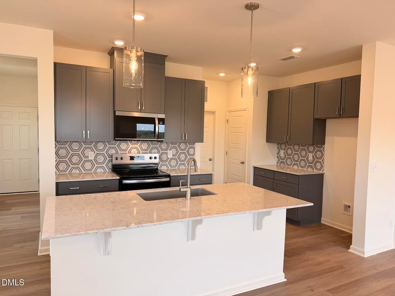 Listing details for 523 Sunset Lake Dr, Durham, NC 27704 : Discover this spacious 4-bedroom, 2.5-bath, two-story townhome with a 2-car garage and an open-concept design perfect for today's lifestyle. Enjoy 9-foot ceilings and a stunning kitchen featuring a large island with quartz countertops, luxury vinyl plank flooring, Whirlpool® stainless steel appliances, Aristokraft cabinetry, and Moen faucets. The owner's suite offers a relaxing retreat with a dual-sink vanity, walk-in shower, elongated toilet, and premium Moen fixtures. Built for energy efficiency, this ENERGY STAR® certified home includes Honeywell smart thermostats for year-round comfort and savings. Future community amenities will include a pool, play field, dog park, and a 9-hole disc golf course—ideal for recreation and outdoor fun.