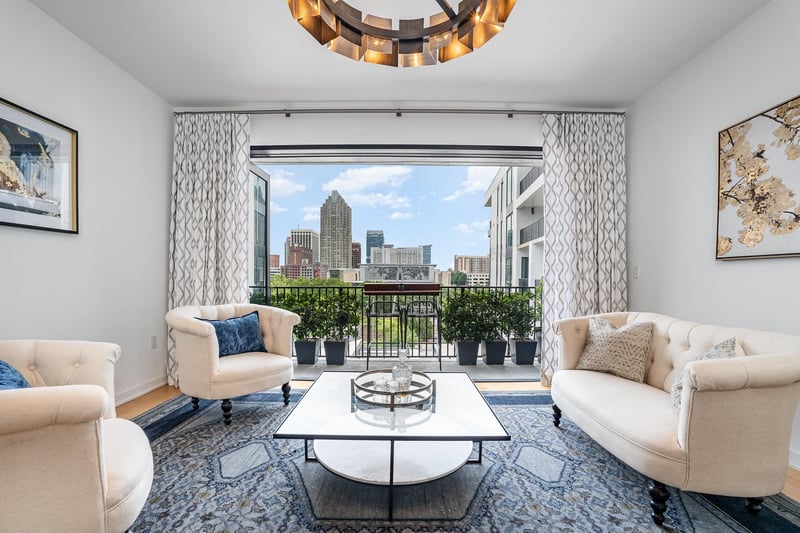 Listing details for 523 West St #402, Raleigh, NC 27601 : Are you ready for the excitement of living in a luxury Condo in the heart of Raleigh? The Fairweather Condos is the right place, and it's waiting for you! This sprawling condominium offers you an incredible home with an even more amazing location. The open floor-plan and high ceilings will melt away the confines of any daily hustle. The bright and lavishly equipped kitchen has a gourmet 6 burner Gas stove and water-falling Quartz countertops. The Kitchen also boasts Custom Cabinets and a Custom tiled Backsplash unlike any other condo you have seen. There is an unbelievable amount of storage space between the 2 utility rooms, 2 walk-in pantries, and 2 walk in closets and a huge laundry room with built in cabinets! If you can't decide which of the two outdoor patios to sit on, you can open the folding wall of glass patio doors and let the seasonal breezes fill your whole home! Powered blinds for the Primary bed and bath allow you to brighten up your morning with the touch of a button. Having a friendly gathering and want to really dazzle? Then head up to the roof and enjoy multiple views of the Raleigh Skyline while grilling on the Community gas grill and sitting around the rooftop Fire pit, As an added Bonus RedHat amphitheater a just a few blocks away... you just might hear your favorite singer play your favorite song! This condo has 2 deeded parking spaces(#28 with Vehicle Charger capability) and another floating space by permit. Set up your appointment right now! Your luxury life in a magnificent (and absolutely breathtaking) condo is waiting for you! Special Financing is available! Inquire with listing brokerage.