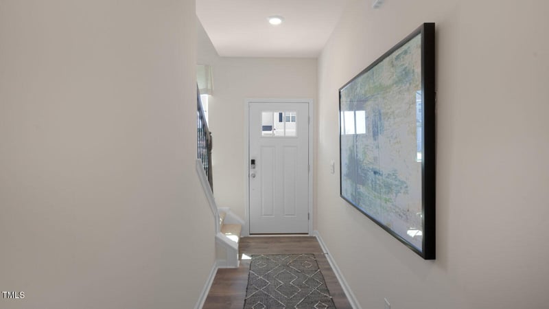 The Pearson is a two-story townhome showcased in The Townes at Bexford located in Wake County, NC. As you step inside this 3-bedroom, 2.5-bath townhome you'll discover 1,418 square feet of comfortable living space. The Pearson also features a 1-car garage, adding convenience and style, making it one of our most sought-after townhome floorplans. The first floor living area is designed with an open-concept layout, seamlessly connecting the kitchen, living, and dining areas, ideal for everyday living and entertaining. The kitchen boasts shaker-style cabinets, quartz countertops with a tile backsplash, and stainless-steel appliances. It's a versatile and functional space with plenty of room to work and socialize. Relax and unwind on your private back patio, looking out towards trees! Elevate your living experience with the second-floor's versatile rooms. Whether you need extra bedrooms, functional offices, or additional bonus spaces, this floorplan has it all. The primary bedroom has its own attached bathroom, featuring a 5' walk-in shower with a clear glass door, a double-bowl vanity with quartz countertops, and a spacious walk-in closet.