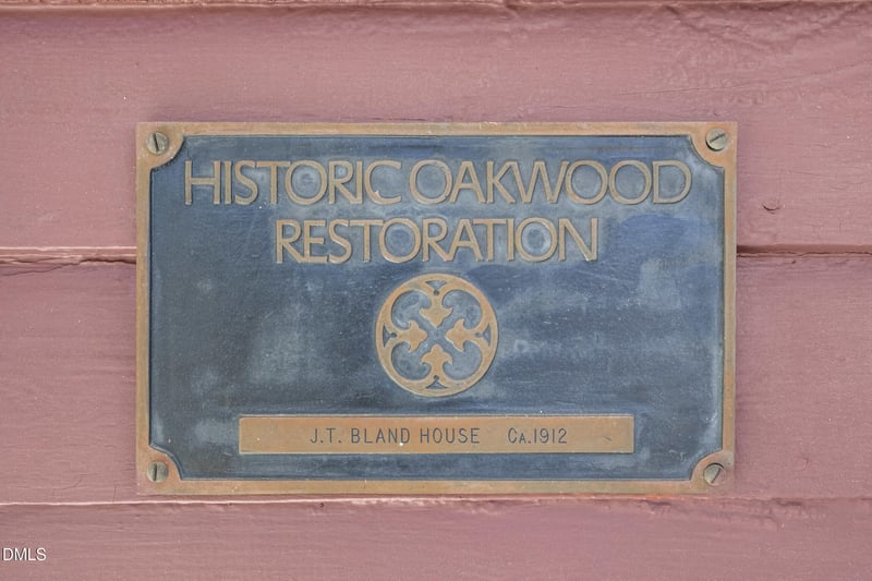 Listing details for 527 East St, Raleigh, NC 27604 : Step into a piece of history with the iconic JT Bland House, built in 1912. This distinguished 4-bedroom, 2-bath home offers original heart pine hardwood floors, soaring ceilings, antique fireplaces, and custom millwork that reflect its rich heritage. Unique period details include intricate moldings and vintage charm throughout the residence. Situated in the heart of Oakwood, this prime location offers the best of downtown living on a picturesque, tree-lined street. The two-story Queen Ann Victorian exudes curb appeal and authentic character with a charming front porch and garden, along with the convenience of off-street parking. Step out back to enjoy a spacious yard perfect for relaxing or entertaining under the stars. This updated classic has strong architectural bones and a flexible layout, offering the perfect canvas for your personal touches. Many recent renovations including exterior restoration with new roof and gutters, as well as refinishing high-quality cedar wood siding. Don't miss the chance to make this Oakwood landmark your own.