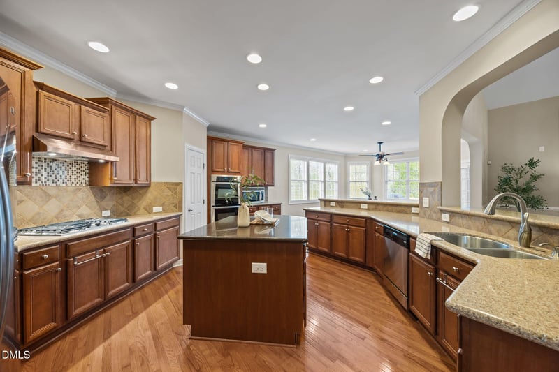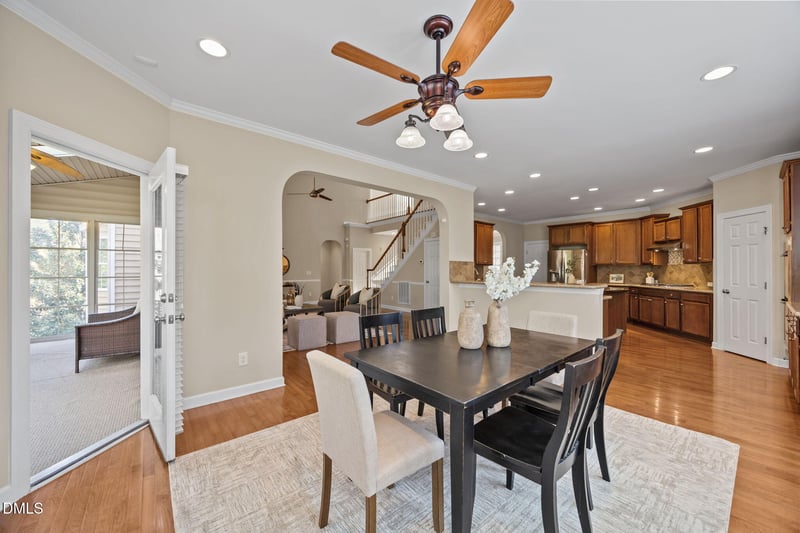 Listing details for 5309 Lyon Farm Dr, Durham, NC 27713 : This elegant brick home delivers the WOW factor you've been waiting for--while checking every box. Designed for effortless living, the first-floor primary suite features a bay window, tray ceiling, and a spa-worthy bath with a jetted tub and separate walk-in shower. Upon entering, you're welcomed by a sunlit front office complete with French doors, a grand two-story entryway, and a formal dining room. Gleaming solid oak hardwoods run throughout, complemented by a dramatic two-story living room with a gas fireplace and a striking wall of windows. At the heart of the home, the chef's kitchen is both stunning and functional--featuring an oversized center island, granite countertops, stainless steel appliances, abundant cabinetry, a gas cooktop with exterior venting, and seamless flow into the main living areas, making it ideal for both elevated entertaining and everyday living. Upstairs, you'll find a spacious bonus room that could easily serve as a second primary suite--perfect for multigenerational living. Three additional generously sized bedrooms complete the upper level, including two connected by a Jack-and-Jill bathroom. Additional highlights include an extra-large garage equipped with a secondary refrigerator, as well as space above--ideal for playroom or exceptional storage. Unwind on the screened-in porch, complete with three-season windows and skylights, and enjoy peaceful evenings watching fireflies dance in the woods. The beautifully landscaped yard showcases blooming dogwoods, Japanese magnolias, and azaleas, creating a picturesque setting for year-round gatherings. This meticulously cared-for home includes a new roof (2020), new water heater (2024), 10 new windows (2025), and new coils for both AC units. A stand-up basement area provides abundant additional storage and space for a workshop. More than just beautiful, this home offers a true lifestyle, with convenient access to I-40, Southpoint Mall, RTP, RDU, and all that Durham has to offer--plus the added bonus of being just a short stroll to the neighborhood pool and playground, and the award winning Lyons Farm Elementary School. OPEN HOUSE SAT. 1-3pm
