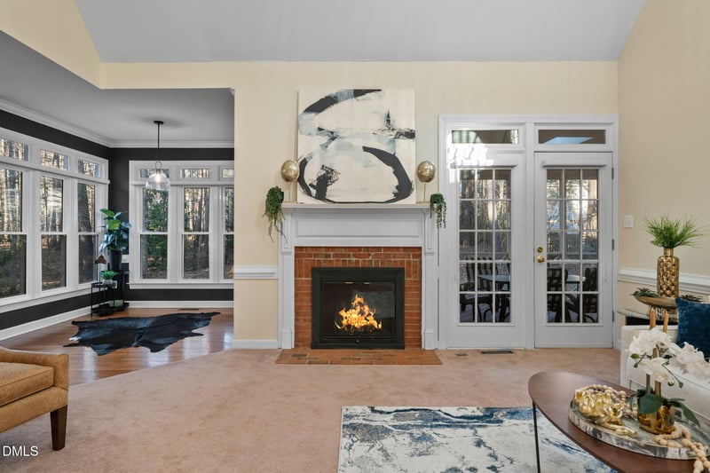 The family room features a cozy gas fireplace with classic brick surround, ideal for relaxed evenings or entertaining. The kitchen includes granite countertops, stainless steel appliances, a gas range, ample cabinetry, and an arched window that fills the space with natural light. A breakfast nook and formal dining room with tray ceiling provide flexible options for everyday living or hosting.