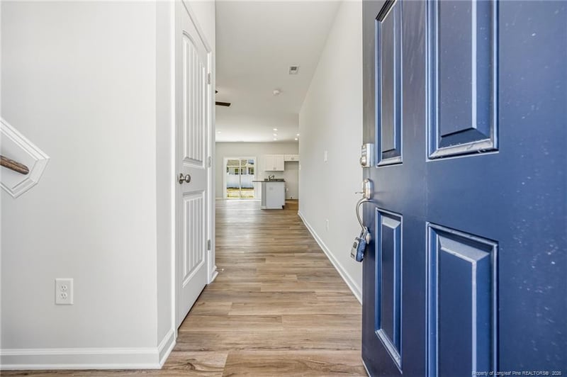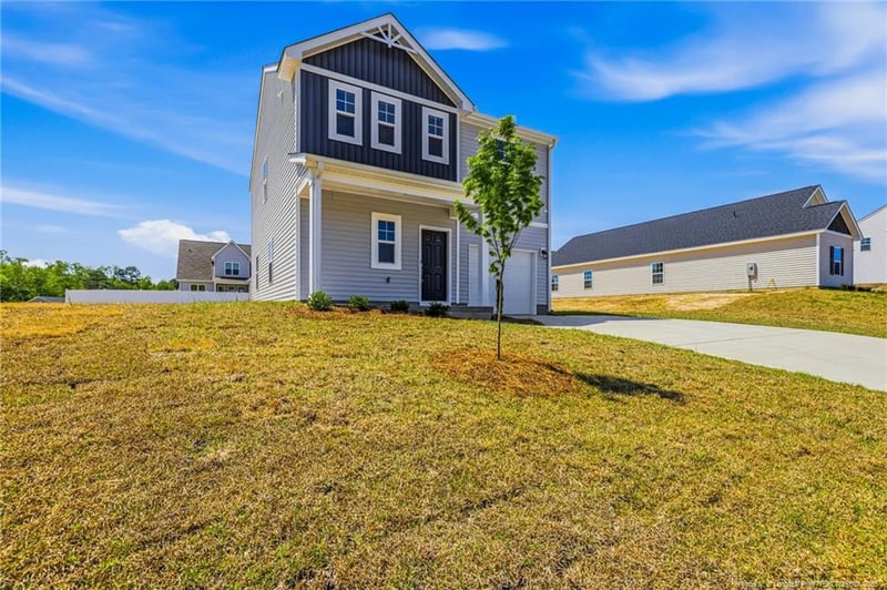 Listing details for 5405 Short Leaf Rd, Fayetteville, NC 28311 : $15,000 Buyer incentive Use As You Choose with First Point Preferred lender-must close by May 31, 2026. This is beautiful 3 bedroom, 2.5-bathroom new construction home on a corner lot with a charming covered front porch. Step inside to an open concept great room filled with natural light that flows seamlessly into the kitchen and dining area. The kitchen is a chef’s dream, featuring white shaker cabinets, granite countertops, a large island, stainless steel appliances plus a walk-in pantry. The dining area overlooks the backyard and provides direct access to the grill patio. A coat closet and convenient half-bath near the garage entry complete the main floor. Upstairs, you’ll find all bedrooms, a versatile loft, and a convenient laundry room. The private primary suite offers a luxurious en-suite bath with dual quartz sink vanity, walk-in shower, linen closet, and access to a spacious walk-in closet. Two additional bedrooms share a full hall bath with a vanity and tub/shower combo. A perfect blend of style, functionality, and modern amenities makes this home move-in ready for today’s lifestyle. Family friendly neigbhorhood with a playground, dog park and walking trail!