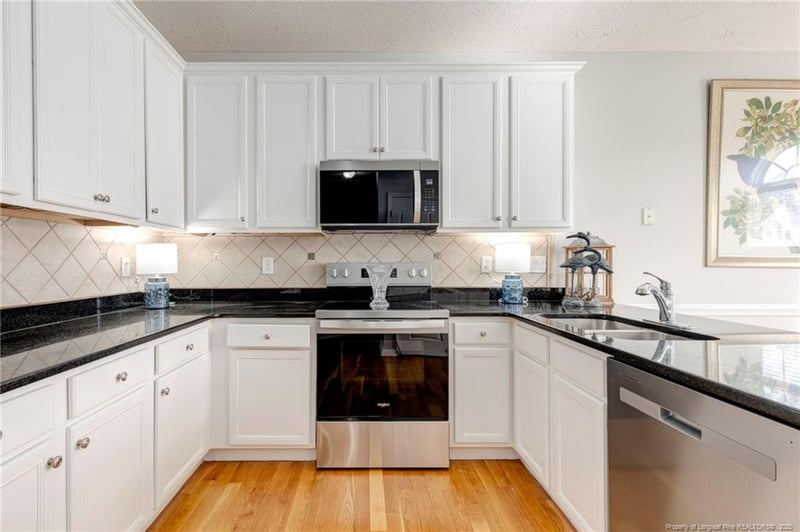 Listing details for 5408 Frostwood Pl, Fayetteville, NC 28304 : -This stylish, executive brick veneer and fiber cement sided home has 4 bedrooms and 3 full baths a Master Bedroom that has direct access to a gorgeous screened porch with its own side deck, double vanity, garden tub, walk in closet. House is a split bedroom floor plan so the master has beautiful privacy. This house has HWD floors, berber carpets, tiled baths, wrought iron railing for steps into garage, separate laundry/mud room off the garage. The upstairs room has its own full bath.Lots of space, great neighborhood, convenient to Fort Bragg, major shopping complex less than 7 minutes away from the home that contains a variety of restaurants, Lowes, Wal-mart, pharmacy, etc. Elegant home with lovely screened porch: enjoy lovely breezes, grilling out on the back deck, great floor plan for entertaining, dining. House is well maintained, clean, neat, beautiful with an incredible 3 full baths.