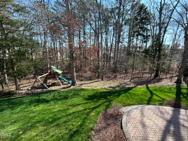 Listing details for 5409 Grandhaven Dr, Durham, NC 27713 : Gorgeous in Grandale! This executive home features generous rooms, high ceilings, and a lovely fenced backyard. The first floor has hardwood floors, a large kitchen with island, and a wall of windows in the family room that overlooks the backyard and HOA-maintained natural area. The first floor bedroom and full bath are ready for your visiting family or home office. Upstairs there is a spacious primary suite with tray ceiling, dual vanities, and walk-in closet. Three additional bedrooms, 2 full baths and a bonus room complete the second story. The landscaped backyard includes a deck, patio, and play structure that conveys. This home has an irrigation system, complete security system with cameras/sensors, newer roof (2020) and newer dual HVAC systems (2020/2021). The low annual HOA fee includes a community pool, clubhouse, and playground. Seller is offering $15k in closing costs with full-price offer to ''Use as You Choose!''