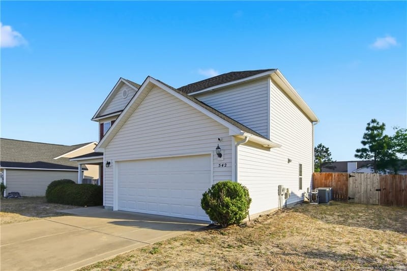 Listing details for 542 Gapway Ct, Hope Mills, NC 28348 : 542 Gapway Court is the one you have been waiting for! Located in the desirable Crosswinds subdivision on a quiet dead-end street, this beautiful 3-bedroom, 2.5-bath home has been freshly updated and is truly move-in ready. Enjoy a formal dining room, open living space with gas fireplace, and a kitchen loaded with cabinet space. Upstairs, you will find a versatile loft area, a separate laundry room, a full bathroom, and all three bedrooms. The large primary suite features a walk-in closet, double vanity, garden tub, and stand-up shower. Outside, the fully fenced backyard with storage shed and garage make this home as functional as it is beautiful. Conveniently located near Fort Liberty with easy access to shopping and dining. With a great floor plan, generous outdoor space, and everything you need to settle in and feel at home, this one checks every box!