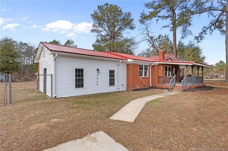 Listing details for 5456 Butler Nursery Rd, Fayetteville, NC 28306 : If you’re looking for acreage, modern upgrades, and versatile outdoor space, this property is a must see! Situated on nearly 5 beautiful acres complete with a pond and a large barn, this fully renovated 3 bedroom, 2 bath home with a bonus room offers the perfect combination of space, functionality, and modern updates. Inside, you’ll find an extensive renovation from top to bottom. The kitchen features new granite countertops, new cabinets, new backsplash, and brand-new appliances. New laminate flooring runs throughout the home, complemented by fresh interior paint, new recessed lighting, and all new light fixtures. Both bathrooms have been completely updated with custom tile work, custom tiled showers, new vanities, new toilets, new LVT flooring, and updated accessories. Major system upgrades provide peace of mind, including a new water heater, all new plumbing with permits, all new electrical with permits, a new panel box, new exterior siding, new gutters, and a new crawlspace vapor barrier. This one surely will not last long!