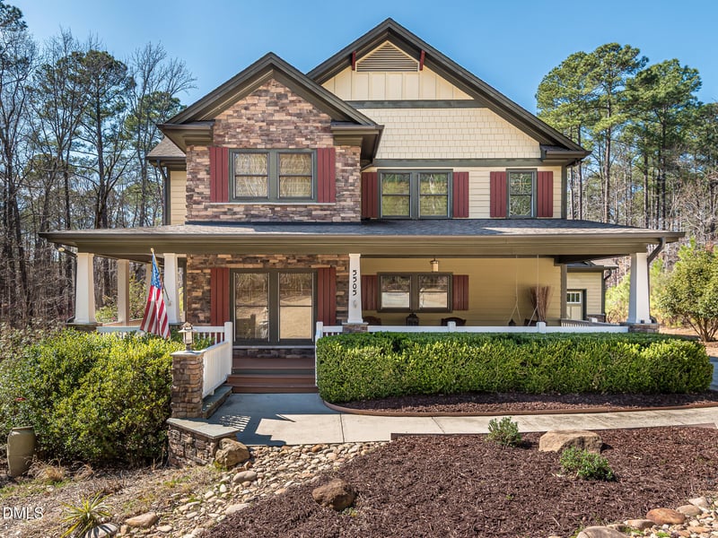Listing details for 5505 Strathmore Dr, Raleigh, NC 27613 : Architect-designed and full of character, this Sarah Susanka Craftsman is a true jewel box tucked away on 1.8 private wooded acres in Raleigh. Thoughtfully crafted with exceptional attention to detail, the home showcases solid oak floors with Brazilian cherry inlay, rich stained trim, custom built-ins, and timeless architectural elements throughout. The spacious layout offers over 4,000 sqft of living space with 4 bedrooms and 4 full baths, including a first-floor guest suite and a finished daylight basement with full bath - ideal for guests, recreation, or additional living space. The kitchen blends beauty and function with granite countertops, stainless steel appliances, a gas cooktop, glass tile backsplash, and walk-in pantry. Signature design moments - like the charming window seat, built-in shelving, and statement fireplace - create warmth, character, and inviting spaces throughout the home. Outdoor living shines with a welcoming covered front porch, screened porch, and deck overlooking the fenced backyard and peaceful wooded surroundings - perfect for relaxing or entertaining. Additional highlights include a whole-home Generac generator, oversized driveway, and an unfinished room over the 2-car garage offering potential for future expansion. A rare opportunity to own a distinctive, architecturally inspired home where craftsmanship, comfort, and natural beauty come together beautifully.