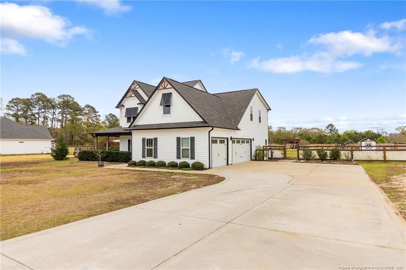 Listing details for 5535 Butler Nursery Rd, Fayetteville, NC 28306 : Experience the rare combination of space, functionality, and lifestyle on 10.2 private acres at 5535 Butler Nursery Rd. This is more than a home—it’s a fully equipped homestead designed for how you want to live.With 2,912 sq ft, 4 bedrooms, and 3.5 bathrooms, the home is built for flexibility and comfort, featuring two full primary suites—ideal for multi-generational living, guests, VRBO opportunities or added privacy.The main living areas offer an open, inviting layout filled with natural light, LVP flooring, blending comfort with functionality. The spacious and unique kitchen with hidden spice rack is built for gathering—whether hosting, cooking, or enjoying quiet mornings overlooking your land, animals, and future creations.The upstairs primary suite is a true showpiece, highlighted by an impressive 400 sq ft walk-in closet designed like a boutique dressing space. Plush carpet in a bedrooms and engineered hardwood flooring in upper common areas. A second primary suite on the main level offers its own exterior access, creating endless possibilities for guests, rental opportunities, extended family, or 2d private living quarters.A 3-car garage adds everyday convenience with room for vehicles, tools, and storage. Equipped with TV and air hose supply. Where this property truly stands apart is outside!Designed for both lifestyle and utility, the land is fully set up and ready to use:•50 AMP Recreational vehicle connection•10.2 acres of open, usable land offering privacy and freedom•3.5 acres fully fenced for horses, livestock, or pets•40×50 workshop/shop — ideal for business, hobbies, or equipment•4-stall barn + chicken coop — ready for a working homestead•Dedicated children’s play area with turf and seating space•Expansive grounds for gardening, recreation, or future expansion•Additional equipment including a Kioti 4700 series tractor and 60” zero-turn mower are available for purchase, making this a true turnkey opportunity.All of this, while still being conveniently located just minutes from Fayetteville’s shopping, dining, and daily essentials.
