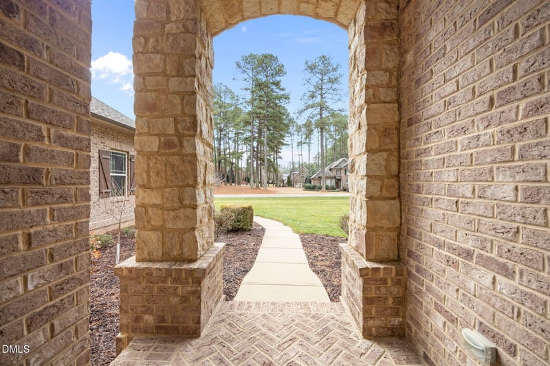 Listing details for 5600 Bella Terra Ct, Wake Forest, NC 27587 : Impossibie to find, all brick one story home with 3 car garage! This beautiful custom home features site-finished hardwood floors that flow through the main living areas, complemented by elegant crown molding and an upgraded trim package. There are four bedrooms downstairs plus a large bonus room and walk in attic on the second floor. The kitchen is designed for both everyday living and entertaining, opening to a stunning living room anchored by an impressive 11-foot stone fireplace with coffered ceilings above. Featuring granite countertops, 2 ovens, built in wall microwave, vented hood to outside. Enjoy seamless indoor-outdoor living with expansive screened-in porch overlooking the .92 acre large level and private lot. Natural Gas heat. Energy Star Tech Shield radiant barrier roof energy reducer sheathing and 40 year architectural shingles. Ideally located just minutes to 540, Falls Lake, Raleigh, and Wake Forest.