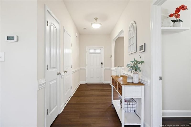 Listing details for 5726 Pondhaven Dr, Fayetteville, NC 28314 : Looking for the cutest find near Fort Bragg? You’ve just found it! Step inside this spacious and beautifully designed home and immediately feel the charm and elegance it offers. The stunning formal dining room welcomes you with luxury wainscoting and an impressive coffered ceiling which creates the perfect setting for memorable dinners and special gatherings. Continue into the heart of the home where an opulent kitchen awaits! Featuring tall cabinetry, gorgeous granite countertops, and plenty of workspace, this kitchen is both stylish and functional. Just beyond, the oversized living room invites you to relax beside a beautiful fireplace that adds warmth and character to the space.Head upstairs and make your first stop the massive Owner’s Suite, thoughtfully designed with comfort and luxury in mind. This private retreat offers the perfect place to unwind after a long day. Step into the owner’s bathroom and treat yourself to a spa-like experience whether you choose a relaxing bubble bath in the soaking tub or a refreshing, steamy shower! Don’t forget to grab your favorite cozy robe from the exquisite walk-in closet that offers abundant storage and space.Upstairs you’ll also find three additional generously sized bedrooms, each offering ample storage and versatility for family, guests, or a home office. Around the corner, a large and conveniently located laundry room makes everyday living even easier! When you're ready to relax or entertain, head downstairs, grab your favorite drink or a cup of coffee, and step outside to the covered patio. This inviting outdoor space is perfect for enjoying peaceful sunrises, glowing sunsets, or hosting friends and family. Turn up the music and enjoy your private fenced backyard oasis which is ideal for quiet evenings of relaxation or lively nights filled with laughter and dancing. Conveniently located near schools, shopping, and hospitals, this beautiful home also offers a quick and easy commute to Fort Bragg and Camp Mackall.Don’t miss the opportunity to make this charming gem your next home!